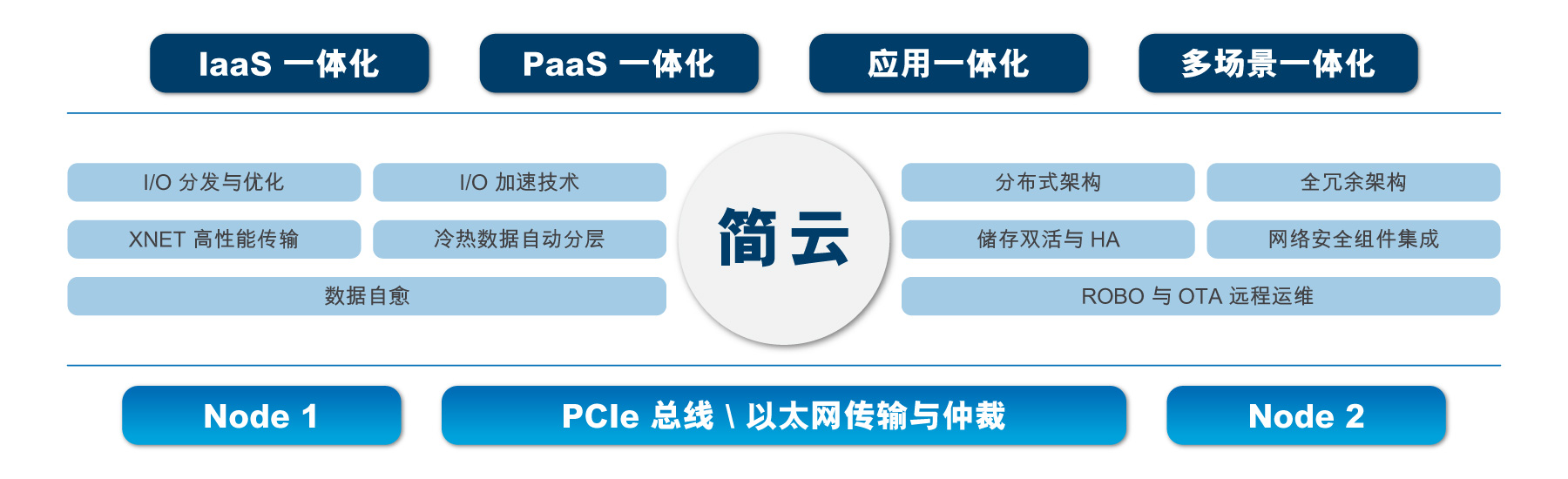 - 极简化︰ 交付简单、一键式操作、轻松支援 ROBO 及 OTA 远程维护、自动节点发现与扩容处理。